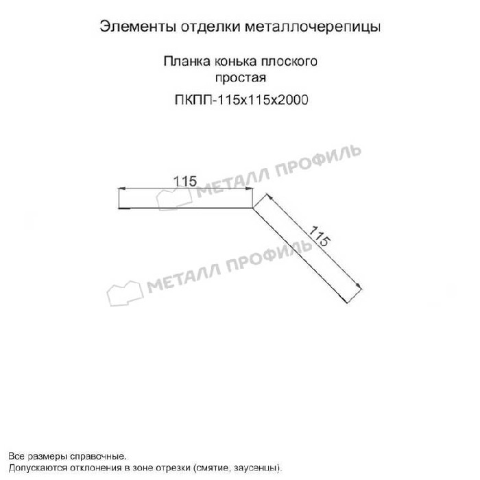 Планка конька плоского простая 115х115х2000 (ПЭ-01-1018-0.45) Показать информацию