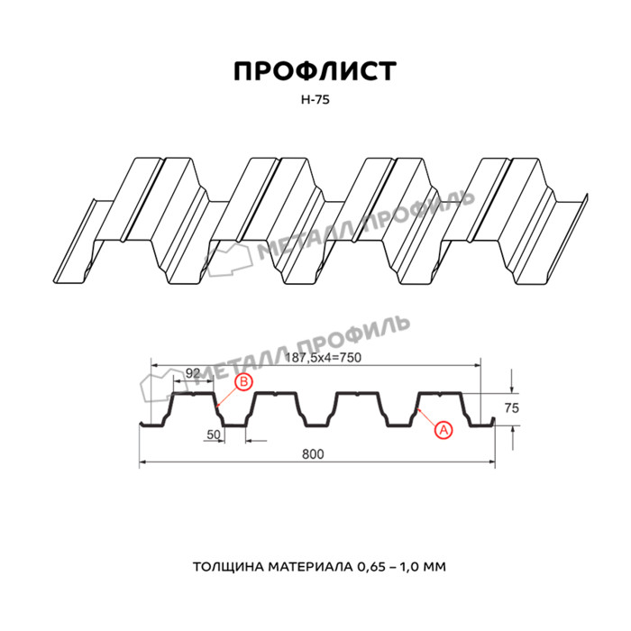 Профлист Металл Профиль Н-75 0,9 Цинк Бесцветный Показать информацию