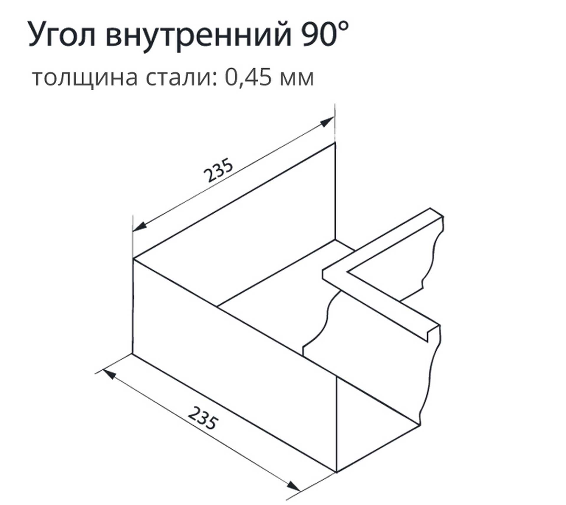 Угол желоба внешний используется для изменения направления потока воды, монтируется на внешних углах кровли.